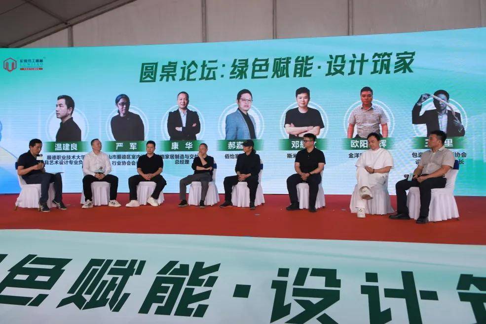 在大会的圆桌论坛环节,来自大家居产业链关键环节的跨界思想在此汇聚碰撞。围绕 “绿色赋能·设计筑家” 这一核心议题,在顺德职业技术大学家具艺术设计专业负责人温建良副教授的主持下,玛格家居制造与交付中心总经理 康华、佰怡家总经理 郝嘉霖、斯米帝董事长 邓耀明、金洋家具总经理 欧阳荣辉等家居领域领军企业家,与佛山市顺德区室内设计行业协会会长 严军、包豪斯精英大师协会设计文化分会会长 王中里、宁津县家具行业协会秘书长 杨景东等设计领袖及行业组织代表,展开了一场深度跨界对话。